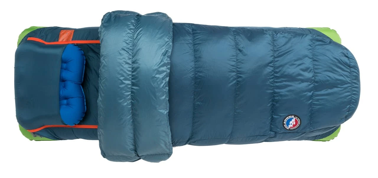 Dial in the perfect setup for the weather with the Lost Ranger 3N1, part of the Big Agnes sleep system lineup. The multilayer zippered system lets you adjust insulation to match the conditions. To save weight, there is less insulation on the bottom where the down would be crushed beneath your body and provide little warmth. Instead, an integrated sleeve holds your sleeping pad securely under you. The cut is roomier than a traditional mummy bag, but the overall weight is comparable to a narrower cut bag.