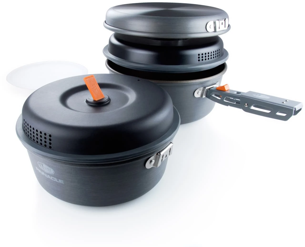 Beyond boil-and-rehydrate, there’s real cooking with real food. Enter the Pinnacle Base Camper, with lots of thoughtful details to make multi-course meals easy. Anodized aluminum provides superb heat distribution and the Teflon® Radiance coating resists abrasion and scratches. Pot lids with built-in strainers prevent the tragedy of spilled spaghetti. Get cooking.