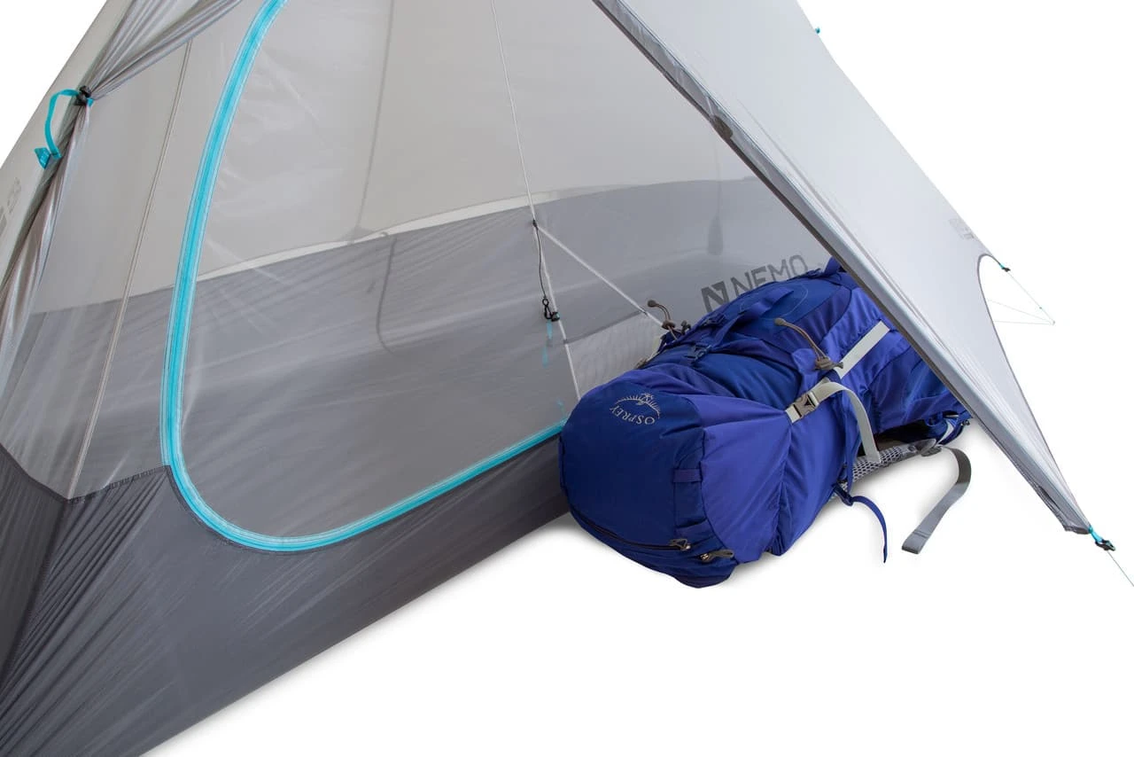 A nearly free-standing, ultralight tent for minimalist backpackers. The Elite moniker means every detail of this tent has been examined for weight savings and performance enhancement. Ultra-fine technical fabric and a single pole structure shave every ounce possible, and the mesh body maximizes ventilation. Nemo’s new OSMOâ„¢ fabric on the fly and floor has the same water protection and durability properties of the previous version but dries much faster and doesn’t sag when it gets wet. The hubbed design is quick to set up, and a clip attachment on the canopy connects to the pole structure to add headroom.