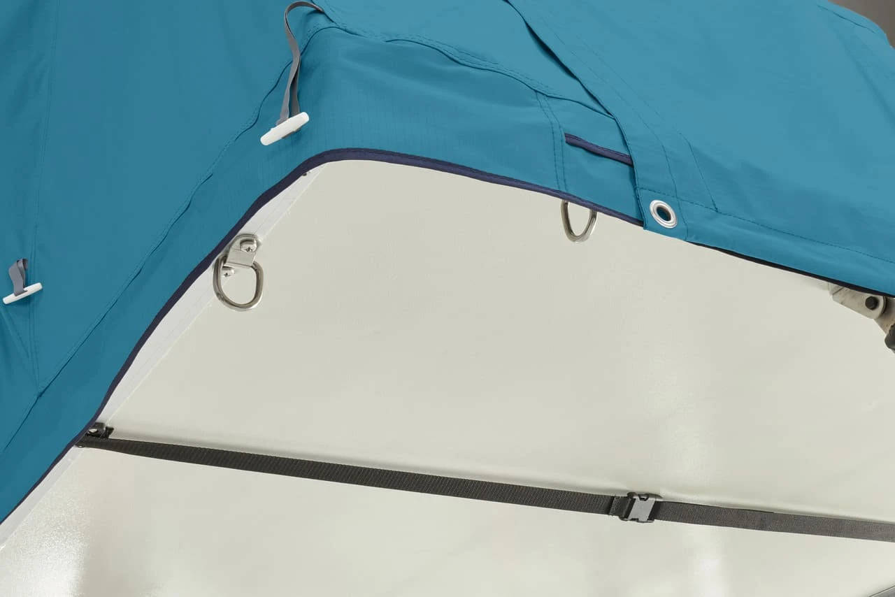 - Integrated telescoping ladder extends or compacts to match the height of your vehicle or compensate for sloped campsites